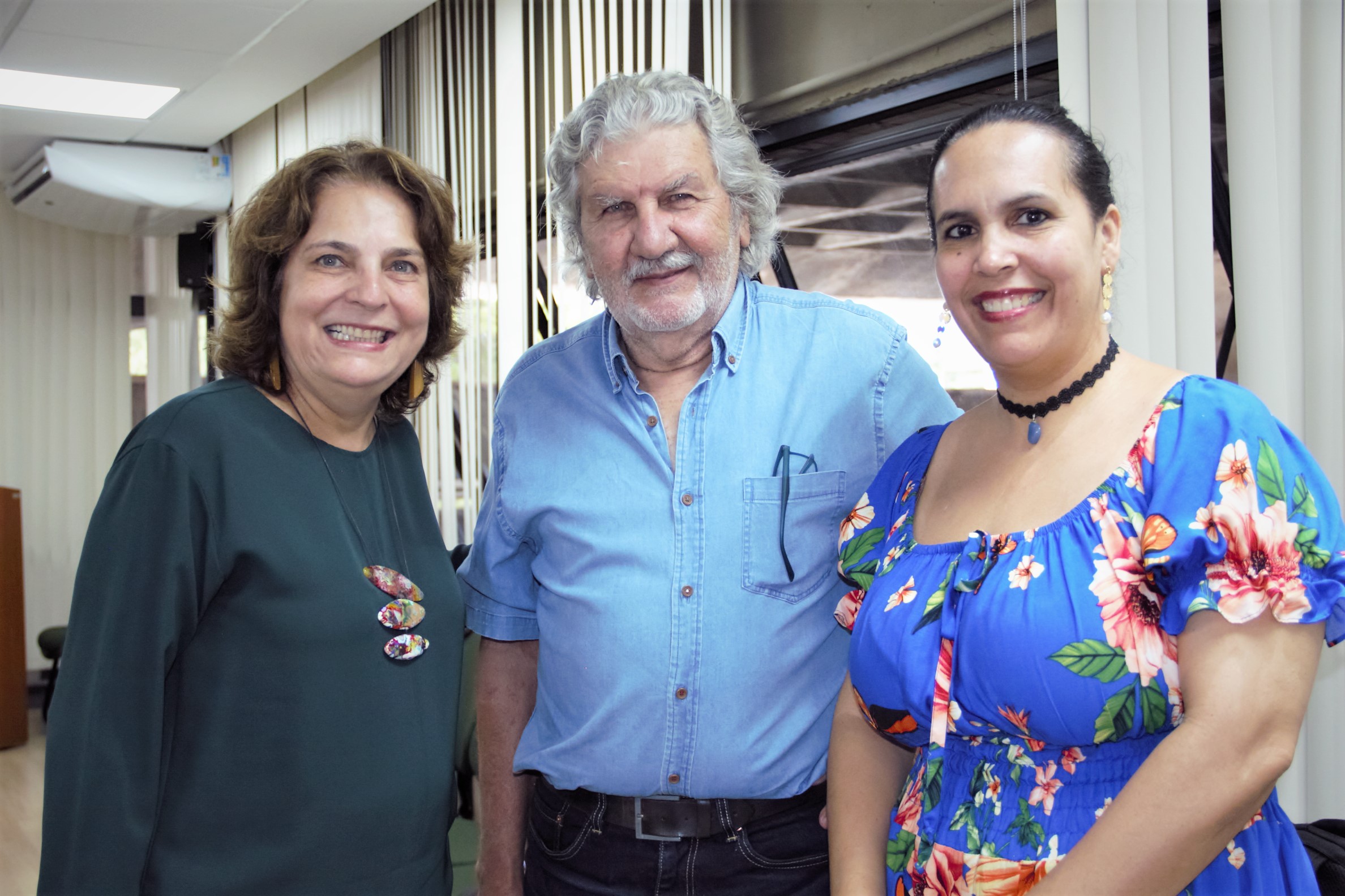 Reitora Márcia Abrahão, o artista plástico cubano José Villa Soberón e a conselheira da embaixada de Cuba Idalmis Brooks. Foto: Beto Monteiro/Ascom UnB. 11/04/2023