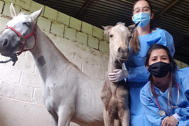 Cavalo Bino e o estudante Jhonis Sousa no Hospital-Escola Veterinário (HVet) da Universidade de Bras...