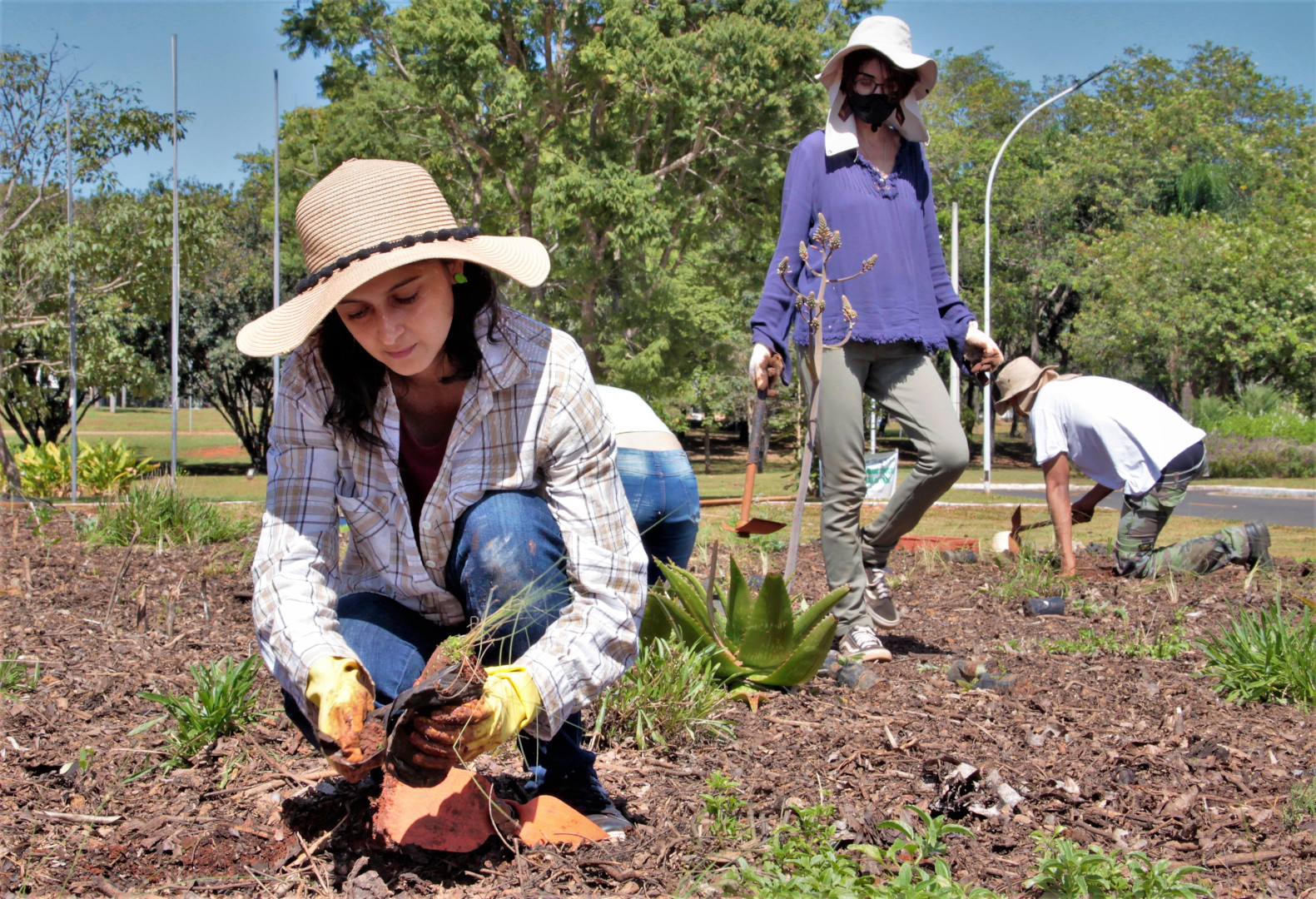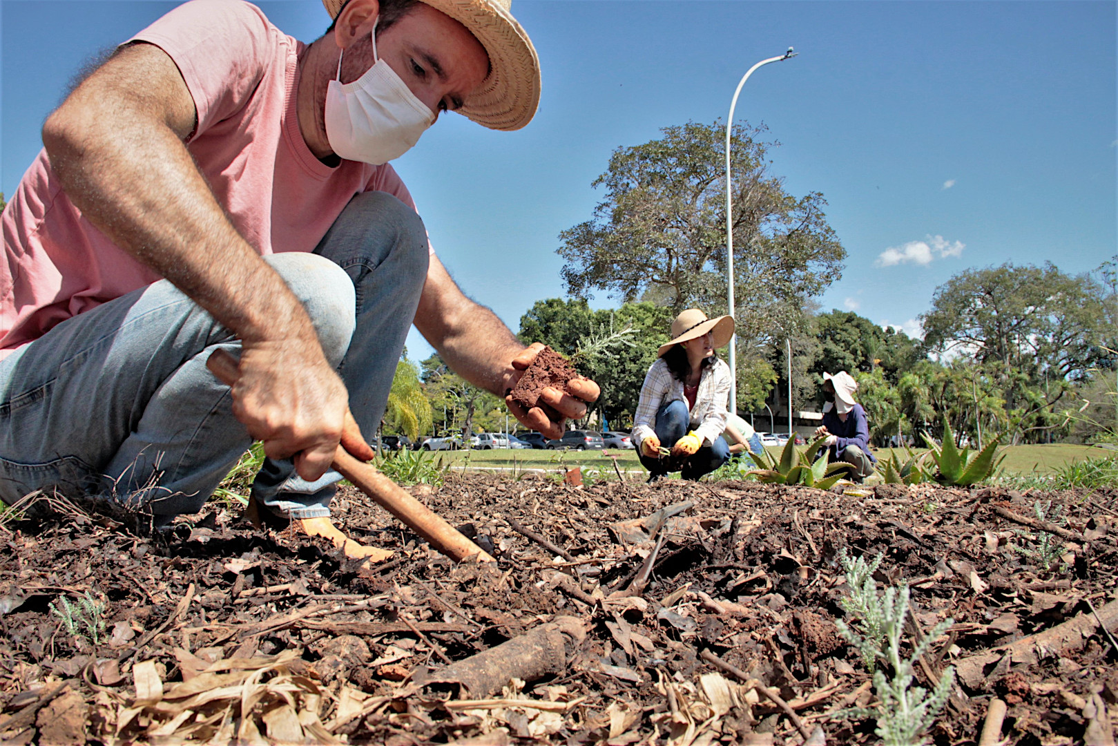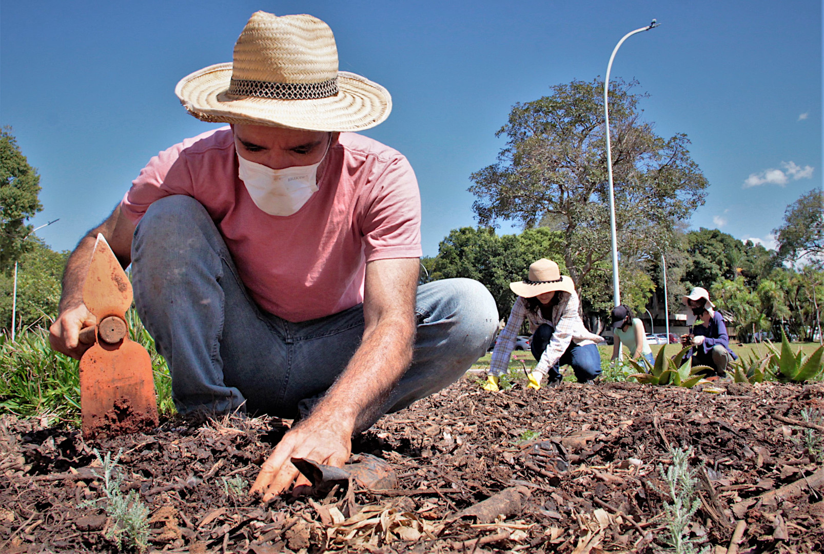 Professor Júlio Pastore (ao centro), responsável pelo Jardim do Sequeiro e alunos. Foto: Beto Montei...