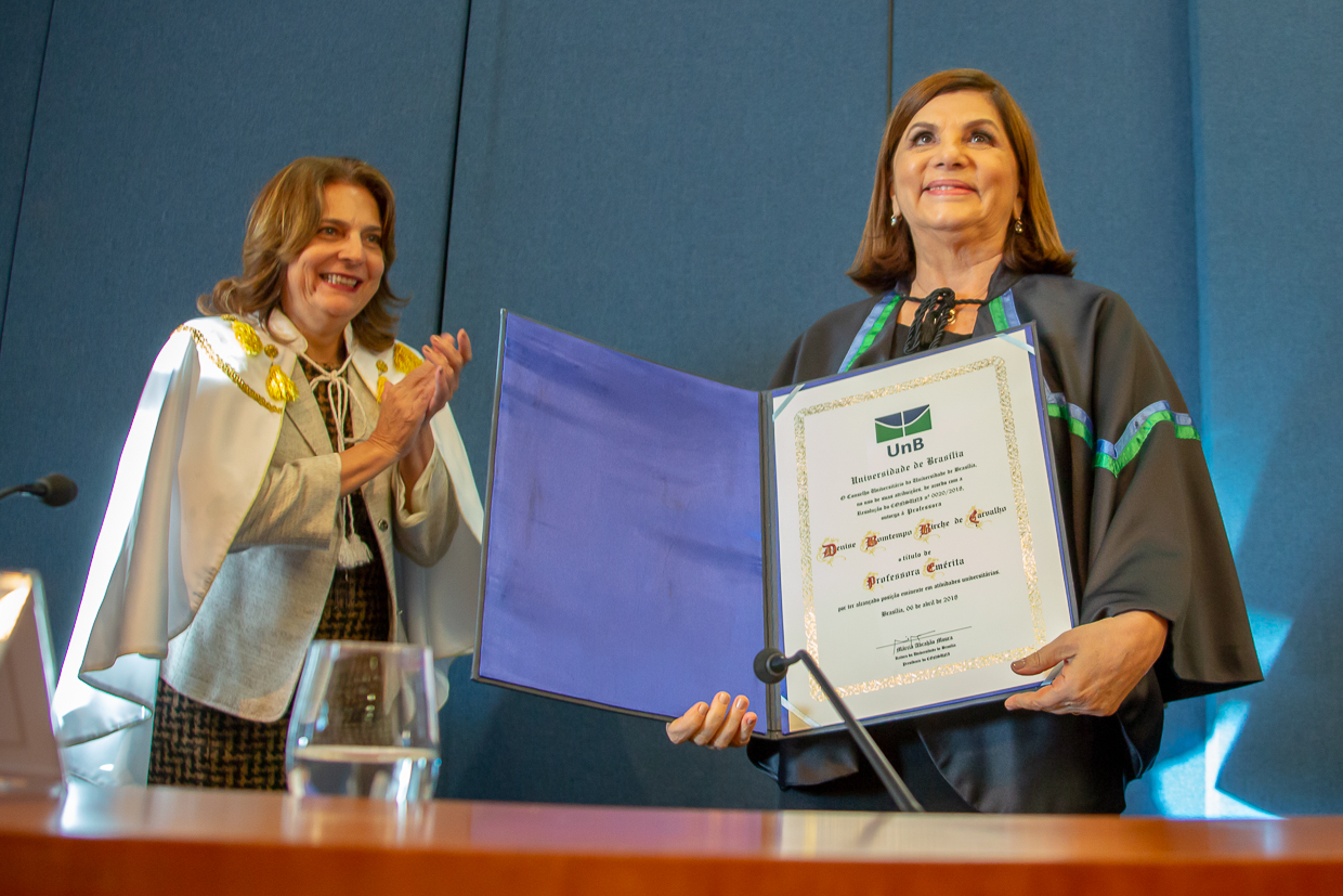 Fátima Verdeaux recebe título de Professora Emérita da UnB. Foto: Audrey Luiza. 06/12/2019