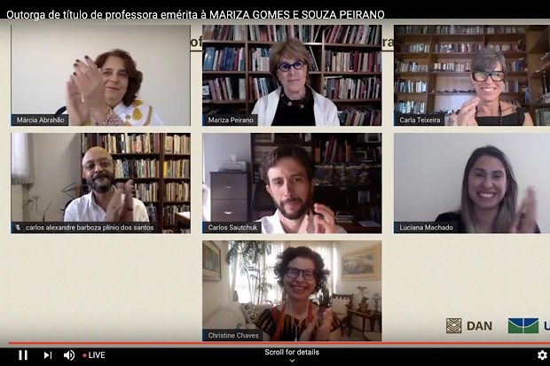 Maria Auxiliadora César recebe título de professora emérita. Foto: Reprodução. 13/11/2020